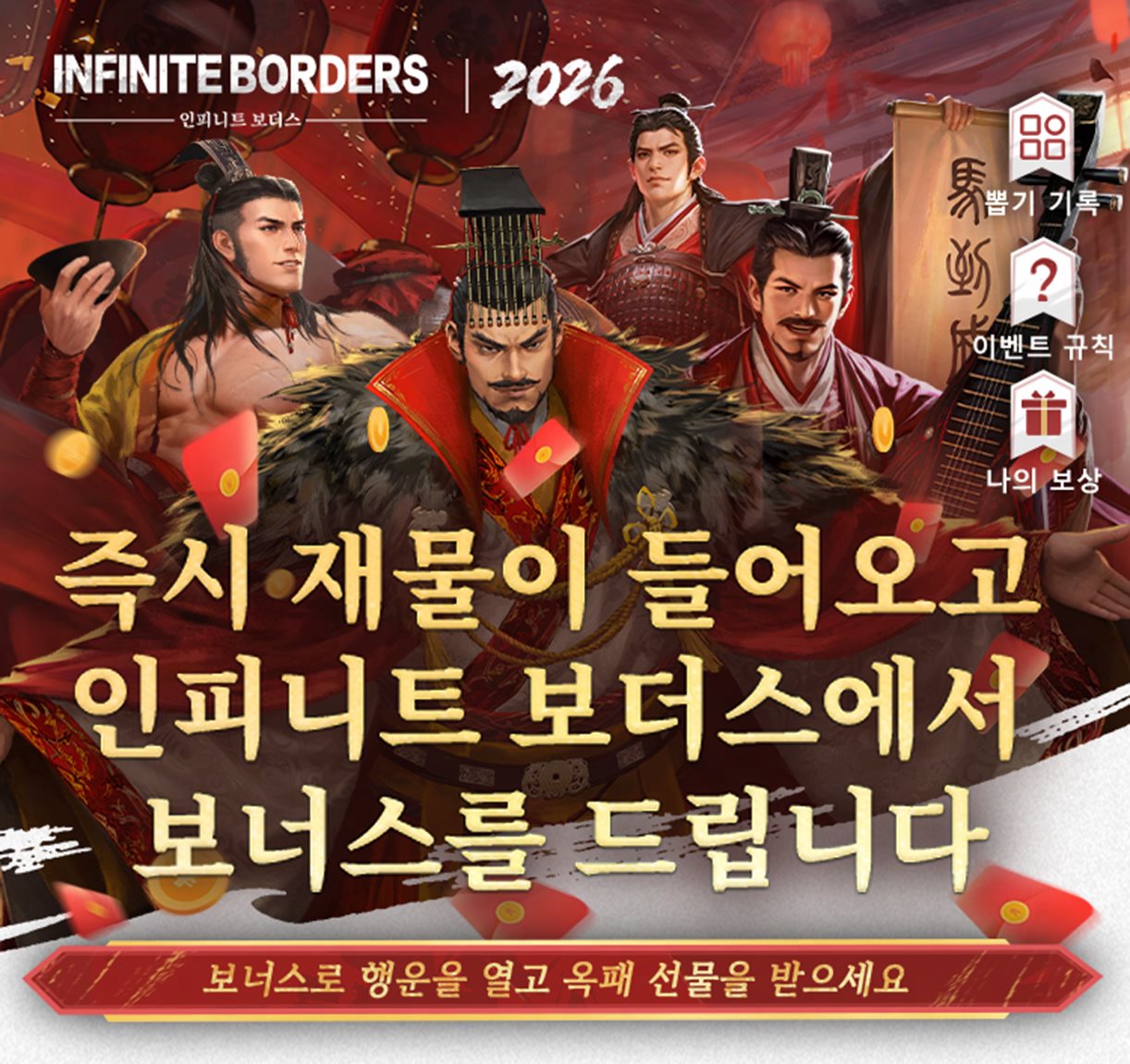 이상 《인피니트 보더스》 설날 축제 첫 번째 공개: 설날 오프닝 이벤트 예고 내용이었습니다. 앞으로 더 많은 축제 이벤트 소식이 공개될 예정입니다. 《인피니트 보더스》를 사랑해 주시고 지원해 주신 모든 주공 여러분께 감사드립니다!