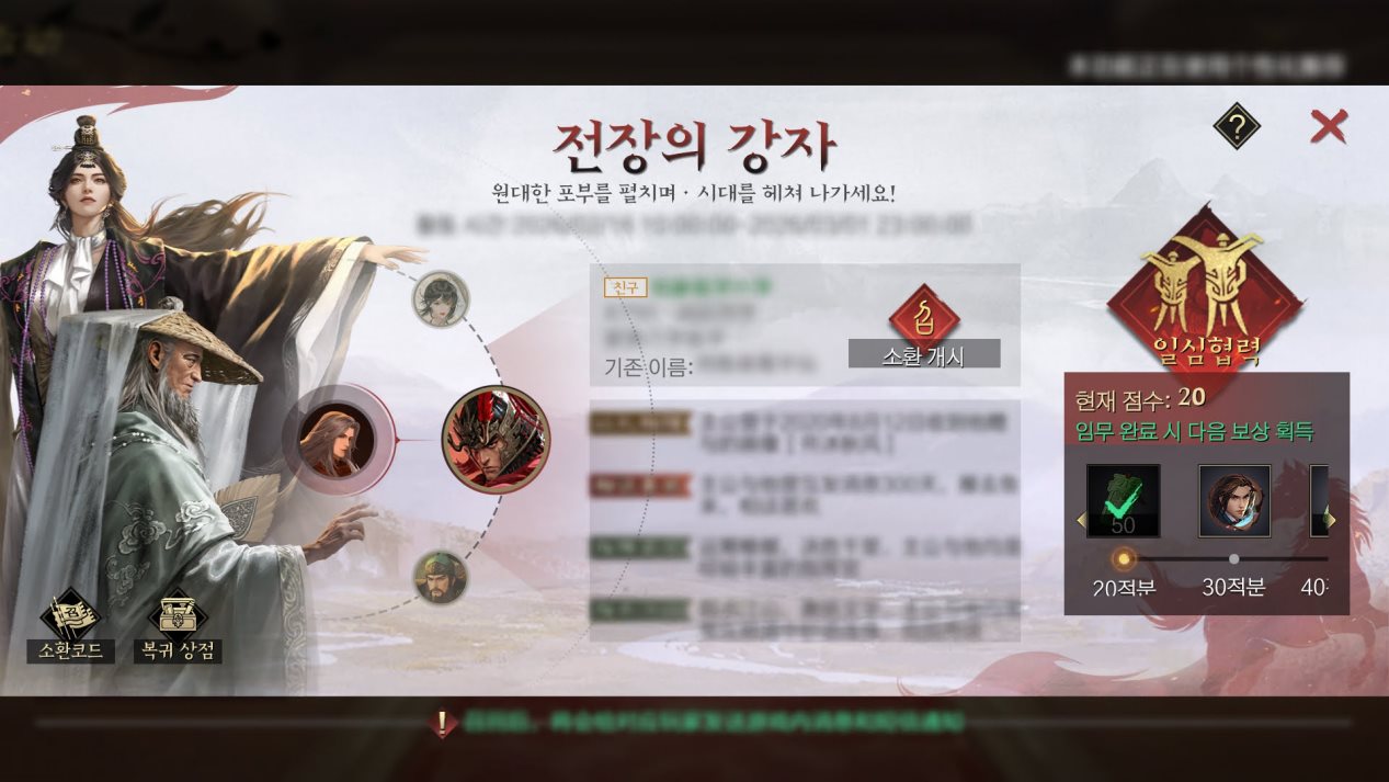 ·이벤트 기간 중 로그인, 무장 시련 참여 및 해당 EX 교환권 등용 시, 누적 등용서신*10 획득 가능